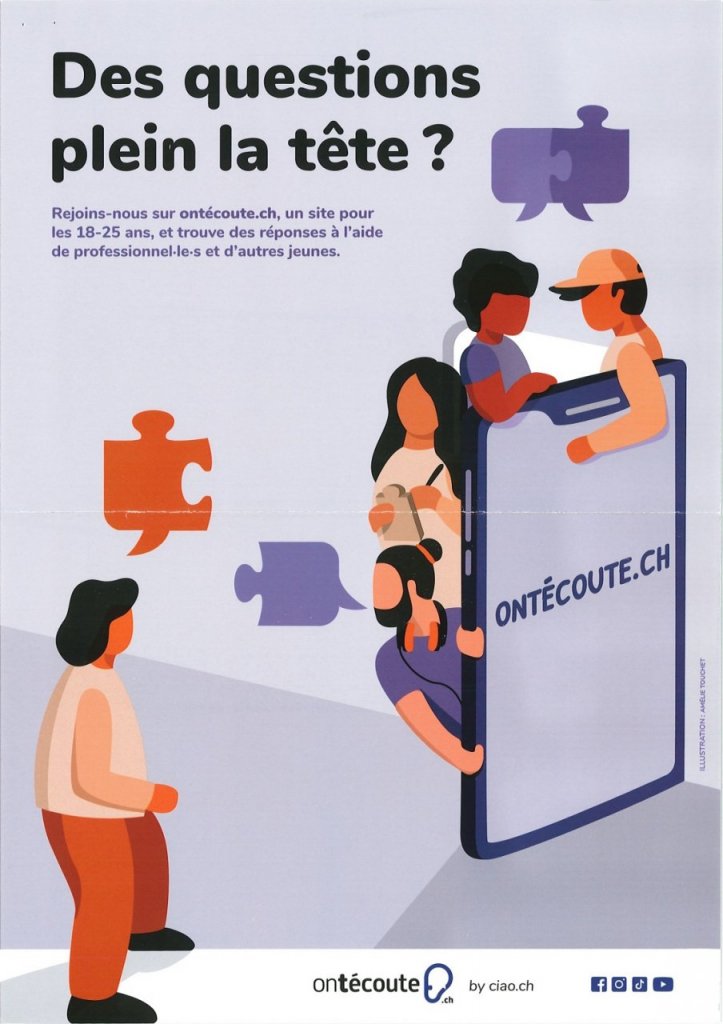 Rejoins-les sur https://www.ontecoute.ch/, un site pour les 18-25 ans, et trouve des réponses à l'aide de professionnel·le·s et d'autres jeunes.